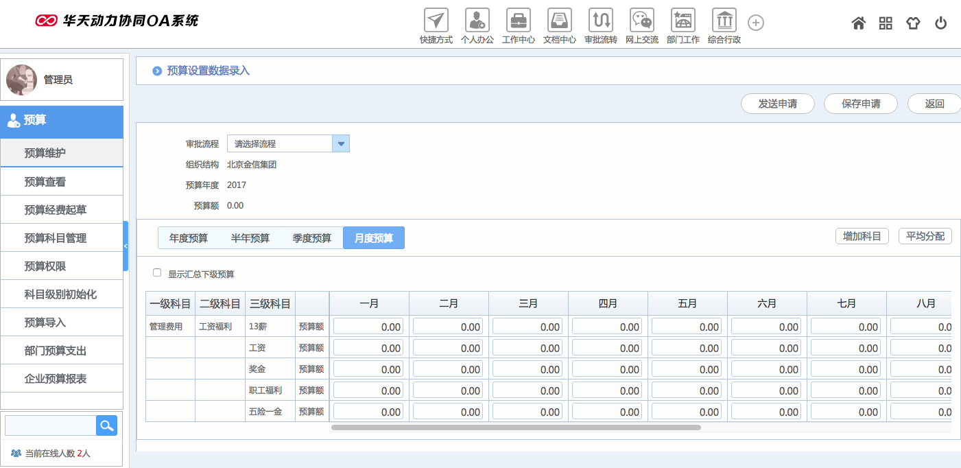 華天動力OA試用版功能測評(十七):預(yù)算