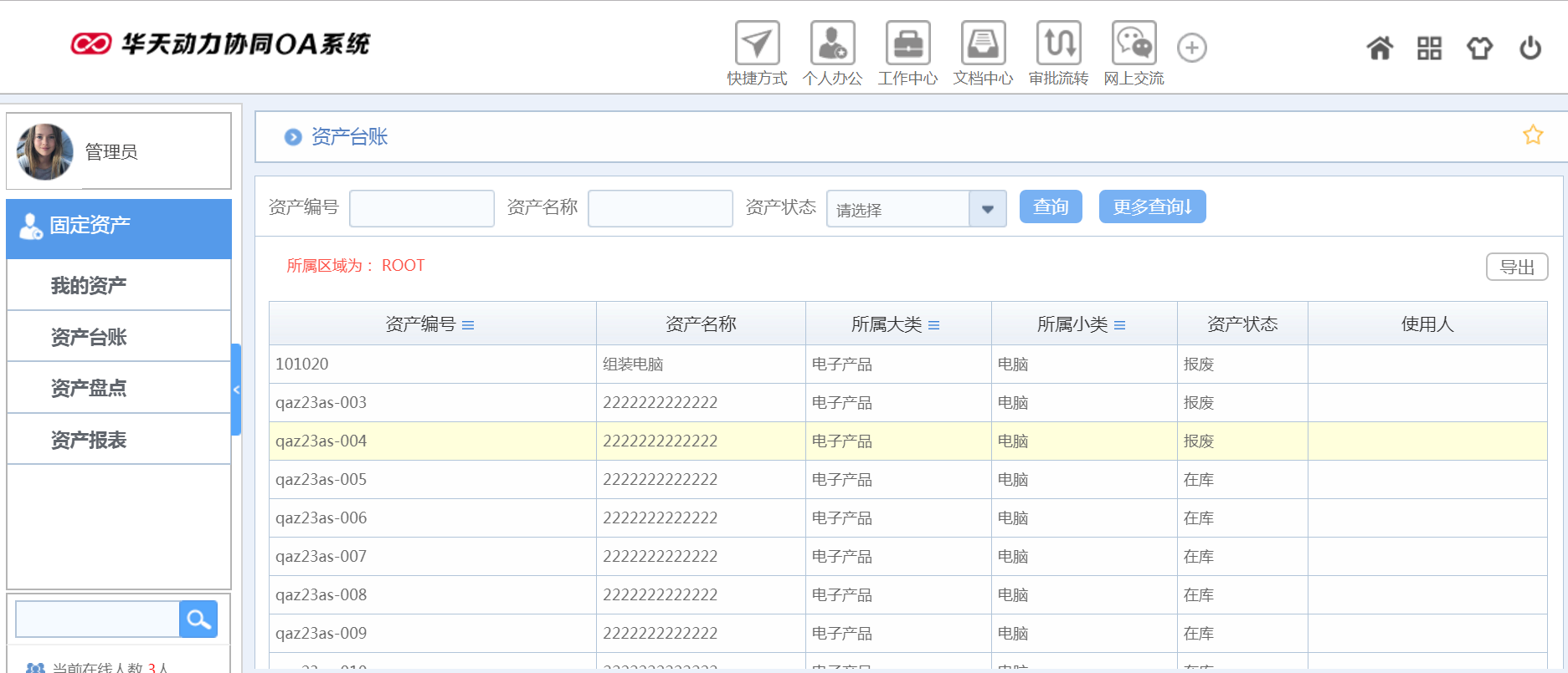 華天動(dòng)力OA試用版功能測評(píng)(十):固定資產(chǎn)
