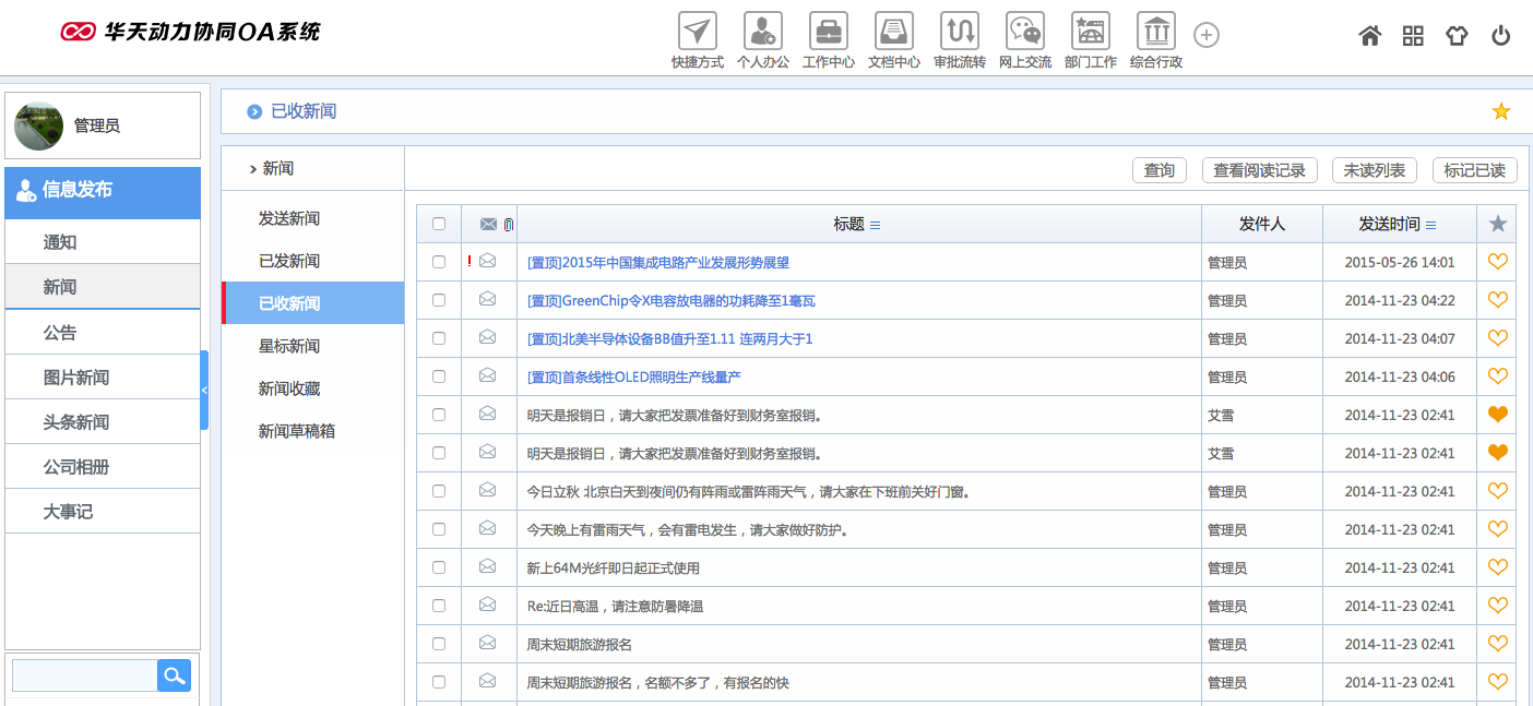 華天動(dòng)力OA試用版功能測評(píng)(十三):信息發(fā)布