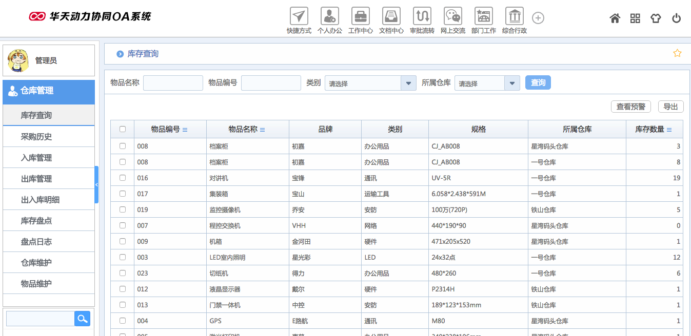 華天動(dòng)力OA試用版功能測評(píng)(十二):倉庫管理